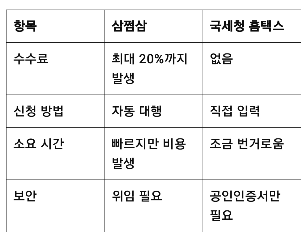 ✔ 시간을 절약하고 싶다면 삼쩜삼, 비용을 아끼고 싶다면 국세청
