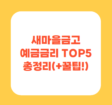 2025년 새마을금고 예금금리 가장 높은곳 TOP 5