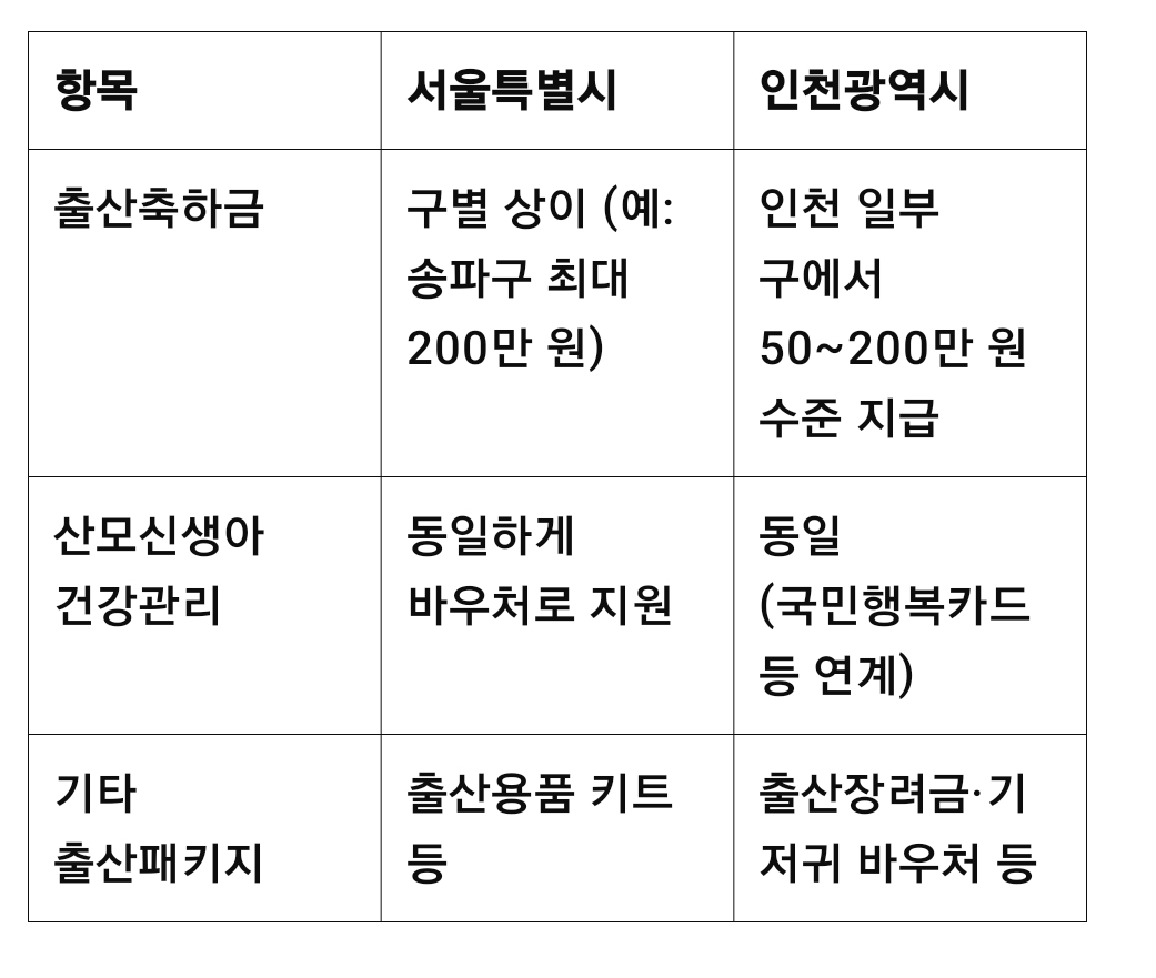 ✔ 다만, 아래와 같은 지자체 개별 출산축하금은 지역마다 다릅니다:
