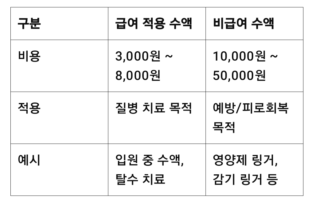 보험 적용 되는 링거 vs 비급여 링거의 차이