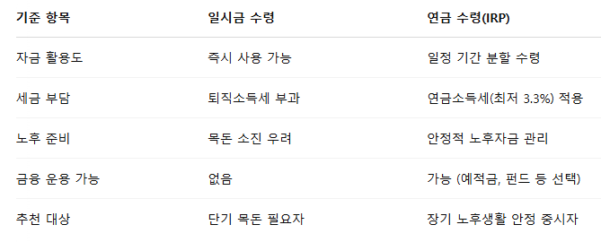 ✔ 퇴직 후 전액을 한 번에 받는 방식