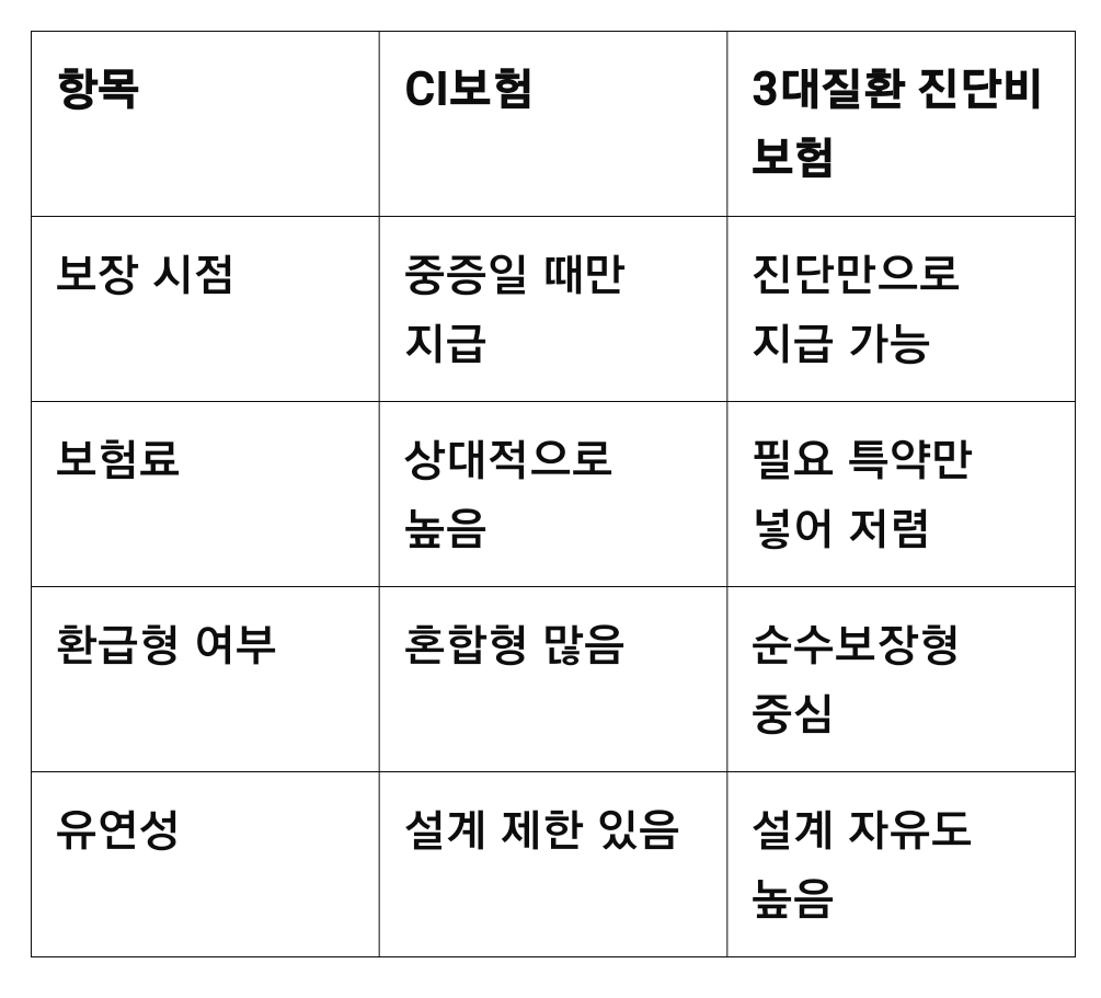 5. 기존 CI보험 vs 3대질환 진단비 보험