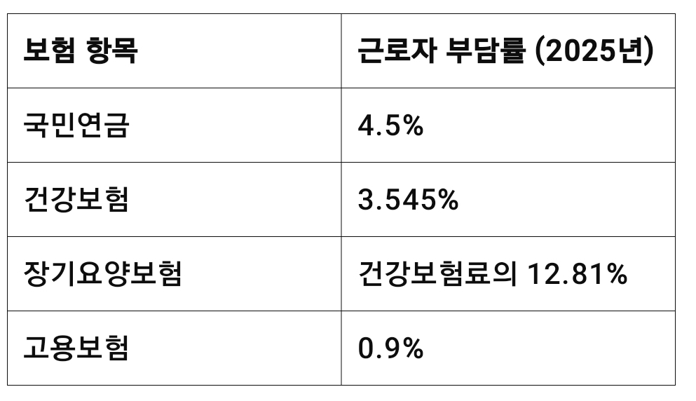 2. 2025년 기준 4대 보험 근로자 부담률